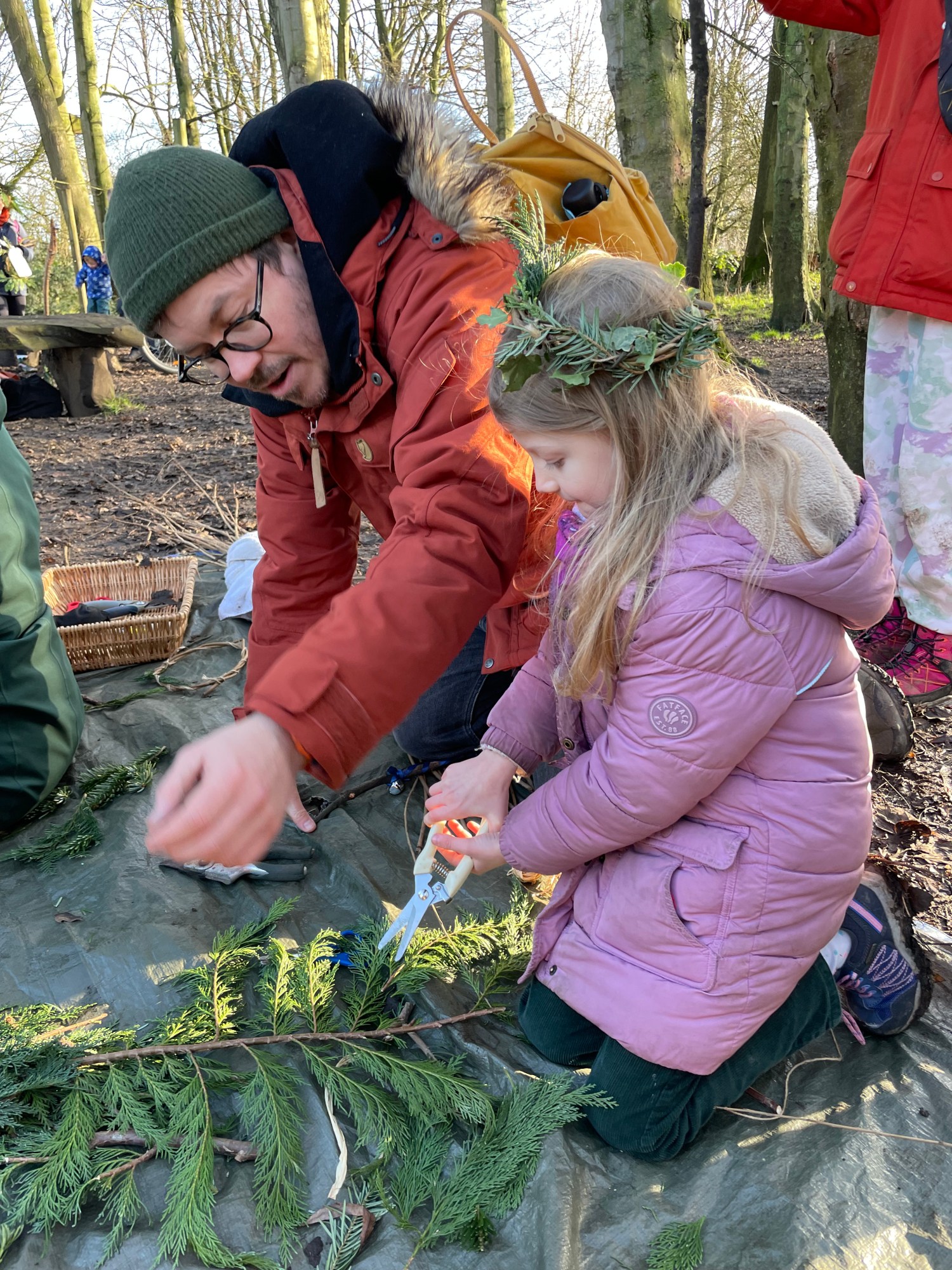 -Crafts and activities for families including willow weaving, apple printing, apple headbands, foraged prints